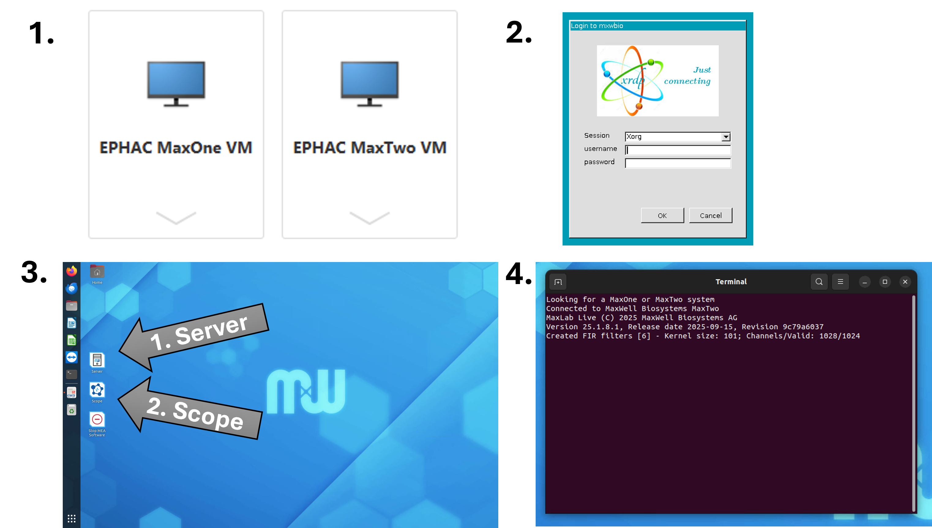 This is a short tutorial describing how to access and set up the MaxTwo system. You will need access to the remote Linux computer and the MaxTwo cell culture system, as well as excitable cells growing on 6- or 24-well MaxTwo plates.
